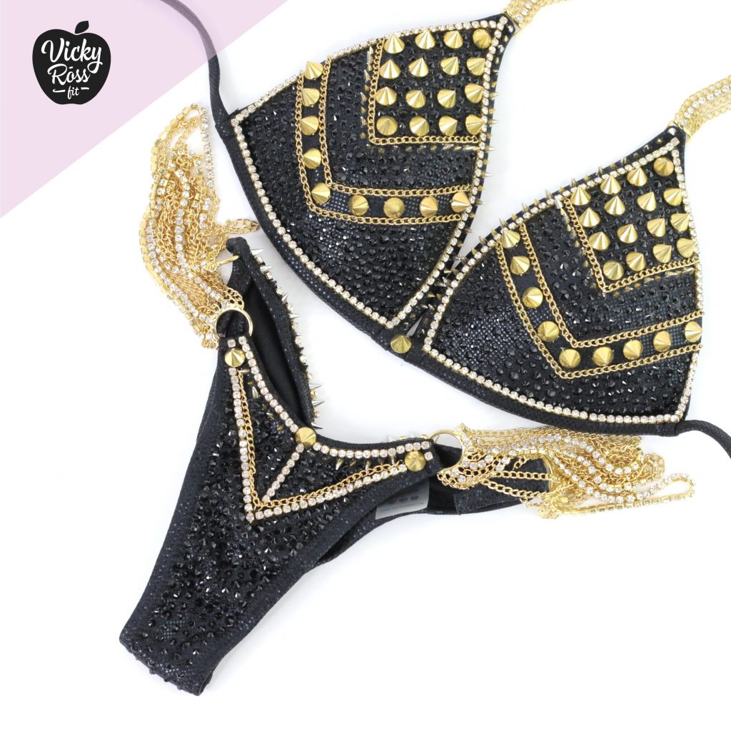 Mysticism, energy and mystical impressions! Excellent crystal bikini for a true elegant fitness lady! The radiance of this designer bikini can blind any competitor. Bright crystals magically shimmer and able to turn the heads of judges. Furthermore bikini will perfectly emphasize the Beauty and Figure of your body. A beautiful tailoring will emphasize your amazing Shapes and give a sexy Look. The incredible brilliance of the crystals of this bikini will cover the whole audience. So in this Heavy Metal Designer Bikini Suit you will add some sparkle to the stage!