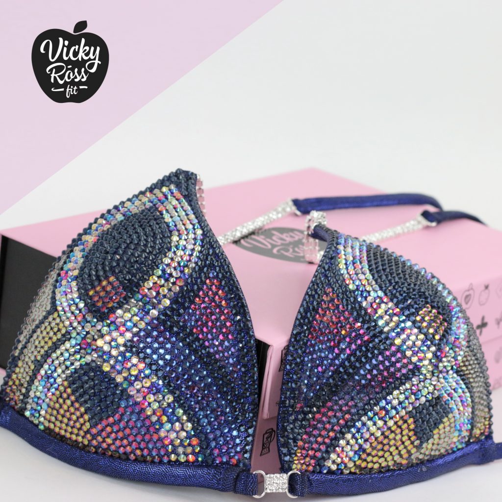 🖤 Fully lined AB Crystal Fitness Bikini Suit by Vicky Ross Fit