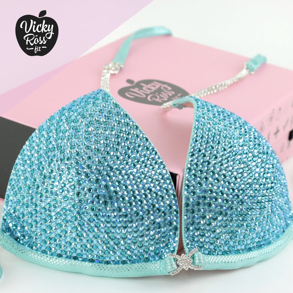 🖤 Fully lined Aqua Mint Crystal Competition Bikini Suit