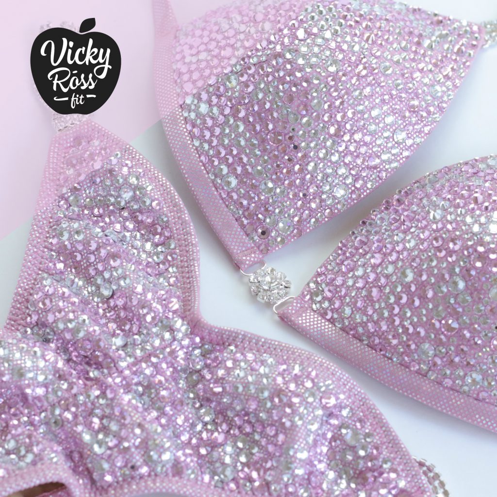 🖤 Fully lined Baby Pink Crystal Competition Bikini Suit