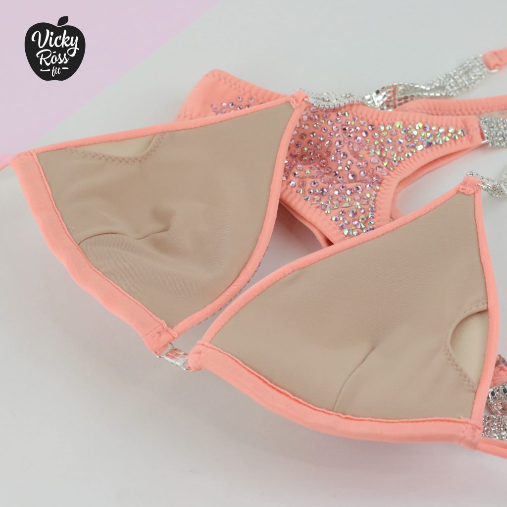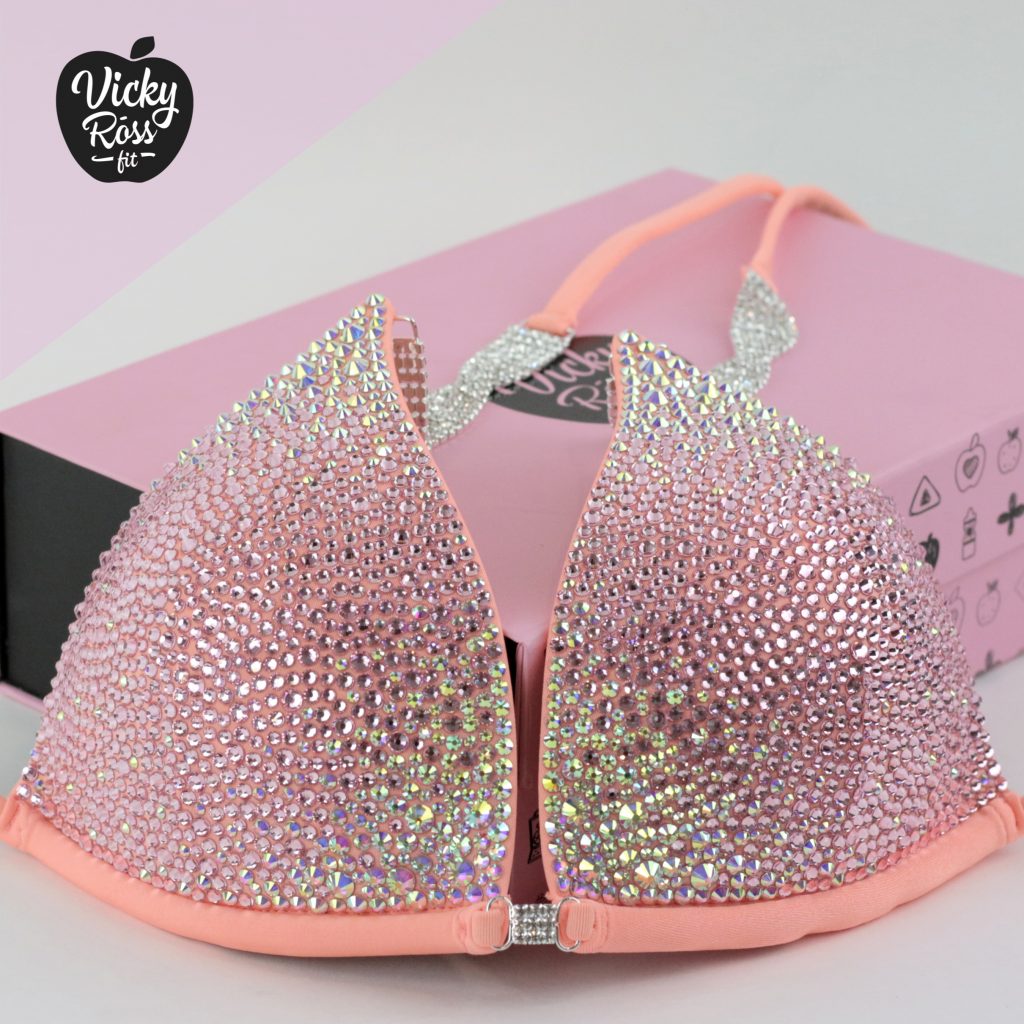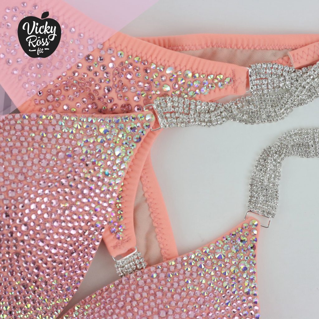 Bikini Bodybuilding Suit | Peach Star Dust Crystal Bikini