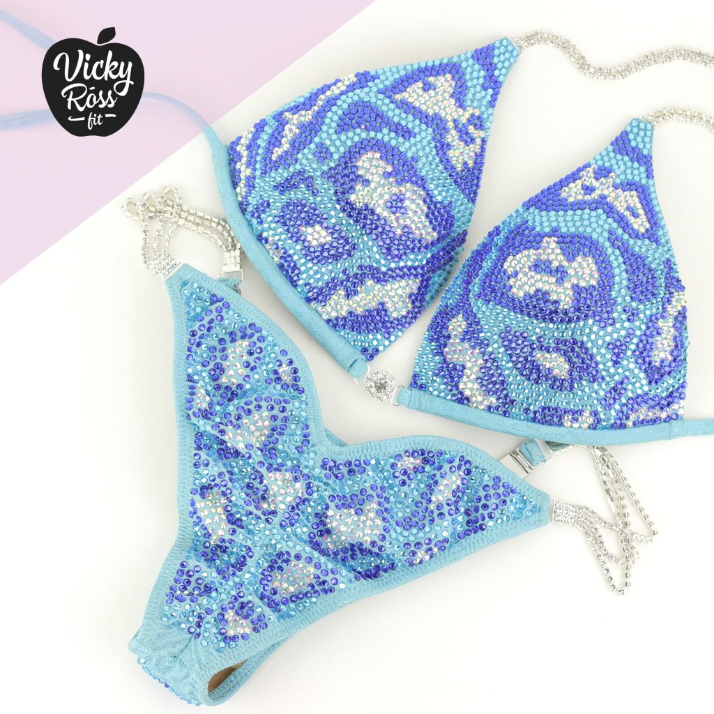 🖤 Fully lined Blue Leopard Crystal Competition Bikini