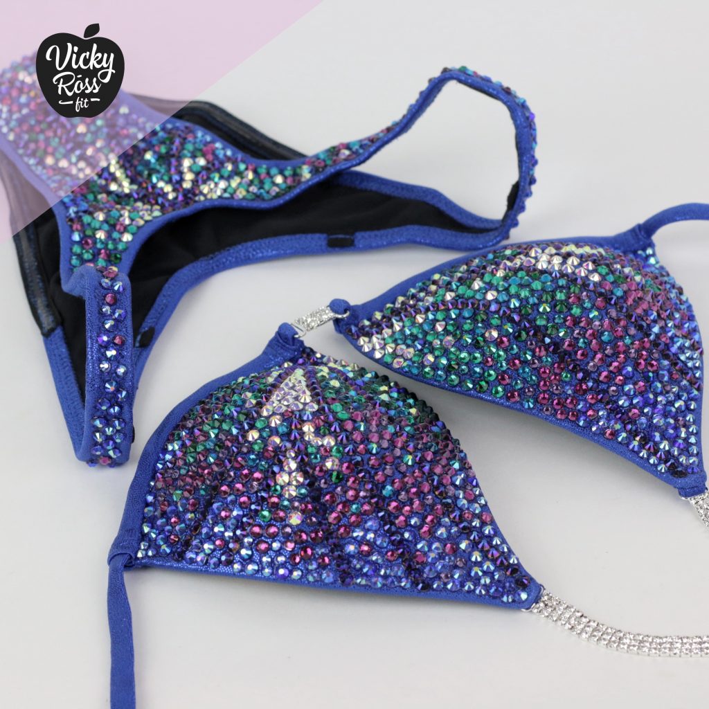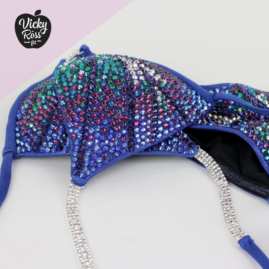 At Vicky Ross Fit we also accept Fully Custom Made Suit Orders! Use “Request Custom Order” button placed under the product image to process your order and we will get back with you within 24 hours by sending you an email asking to provide all needed measurements and directions on how to process your custom order. Custom made crystal bikini can be made in any desired fabric (nylon, velvet, holographic), color and size. At Vicky Ross Fit you have the opportunity to become a designer yourself and build a suit from your inspiration!