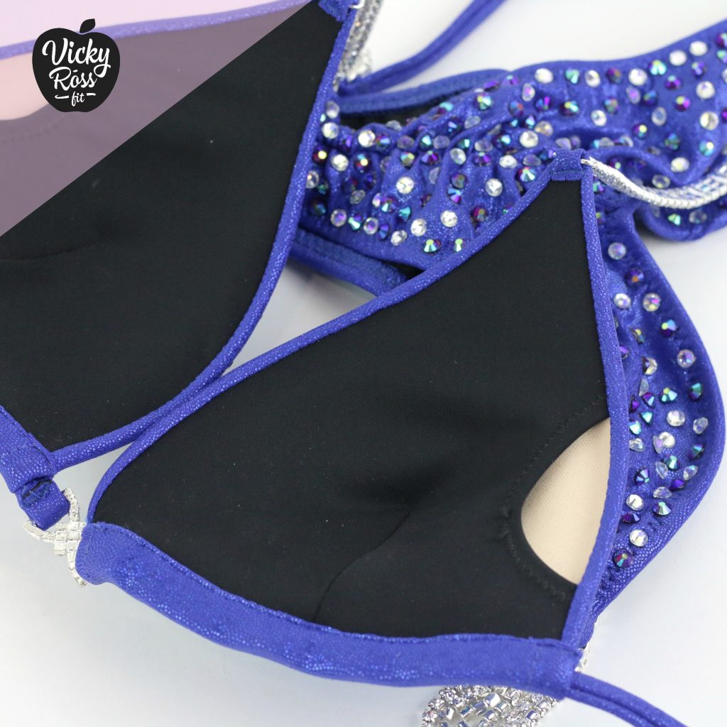 Stylish and Deep Blue Posing Crystal Suit is perfect for your next Bodybuilding Competition show! This Deep Blue Holographic material in combination with Hand applied Crystals is magically beautiful. The Hard molded triangle top with push up emphasizes your breasts and makes you even sexy. You will definitely look Gorgeous!