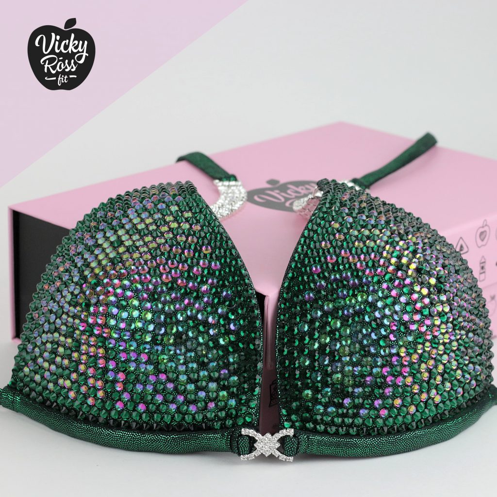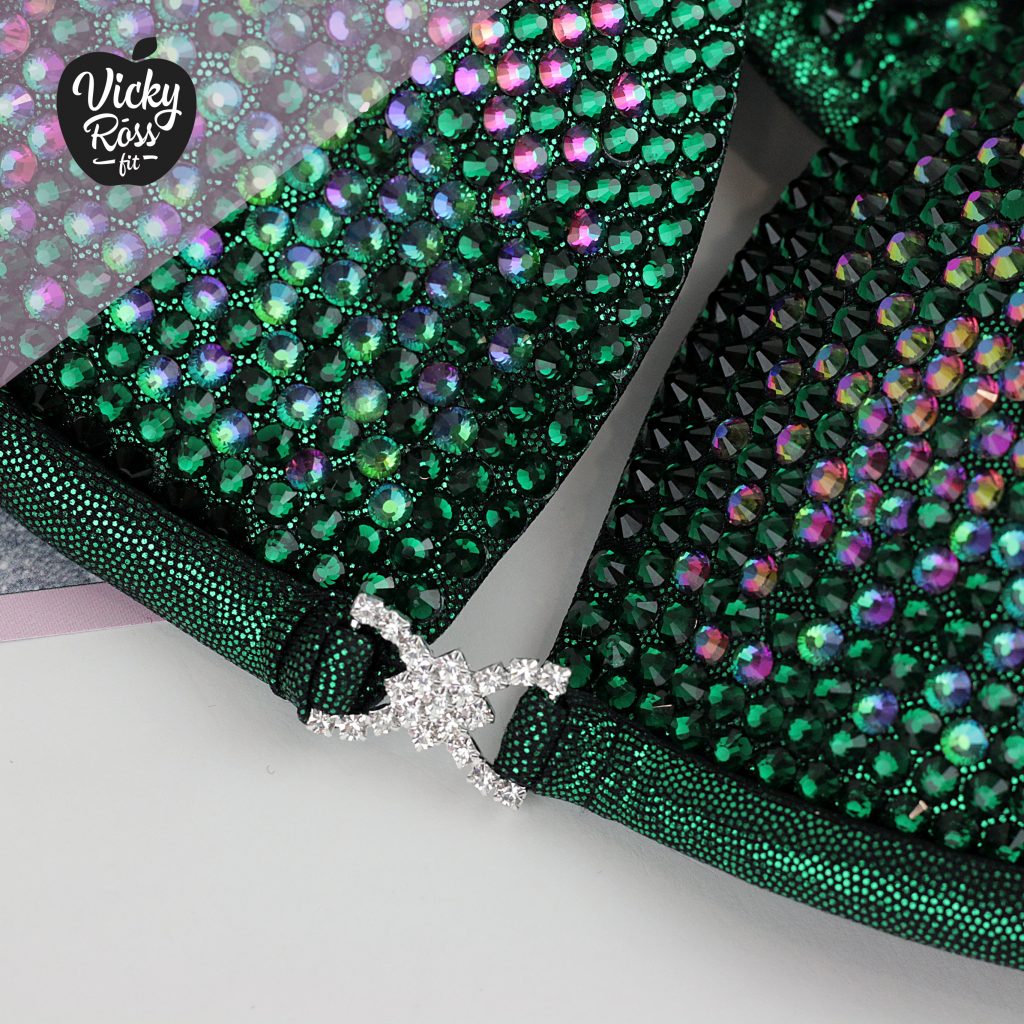 At Vicky Ross Fit we also accept Fully Custom Made Suit Orders! Use “Request Custom Order” button placed under the product image to process your order and we will get back with you within 24 hours by sending you an email asking to provide all needed measurements and directions on how to process your custom order. Custom made crystal bikini can be made in any desired fabric (nylon, velvet, holographic), color and size. At Vicky Ross Fit you have the opportunity to become a designer yourself and build a suit from your inspiration!