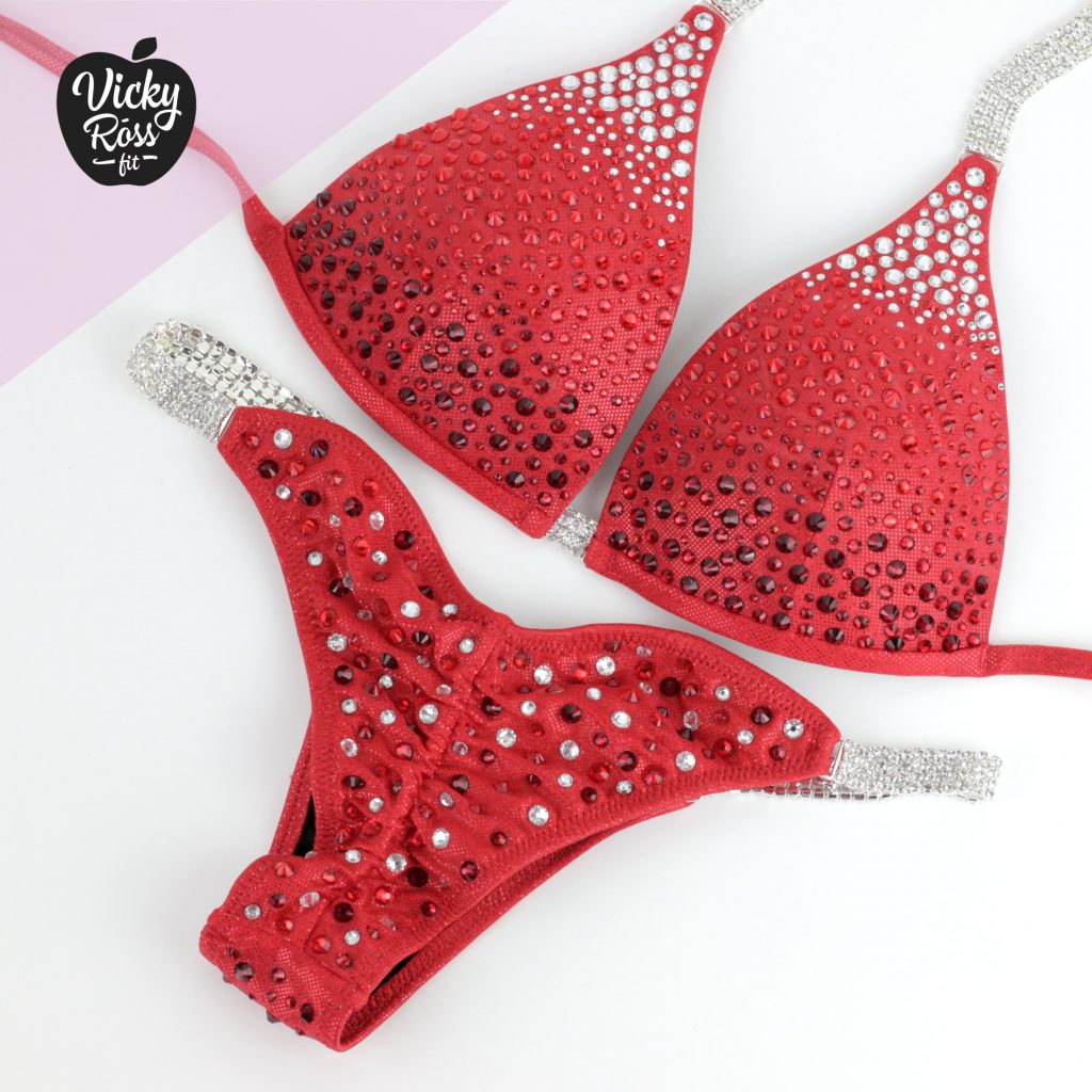 Fitness Competition Bikini | Red Ombre Designer Suit