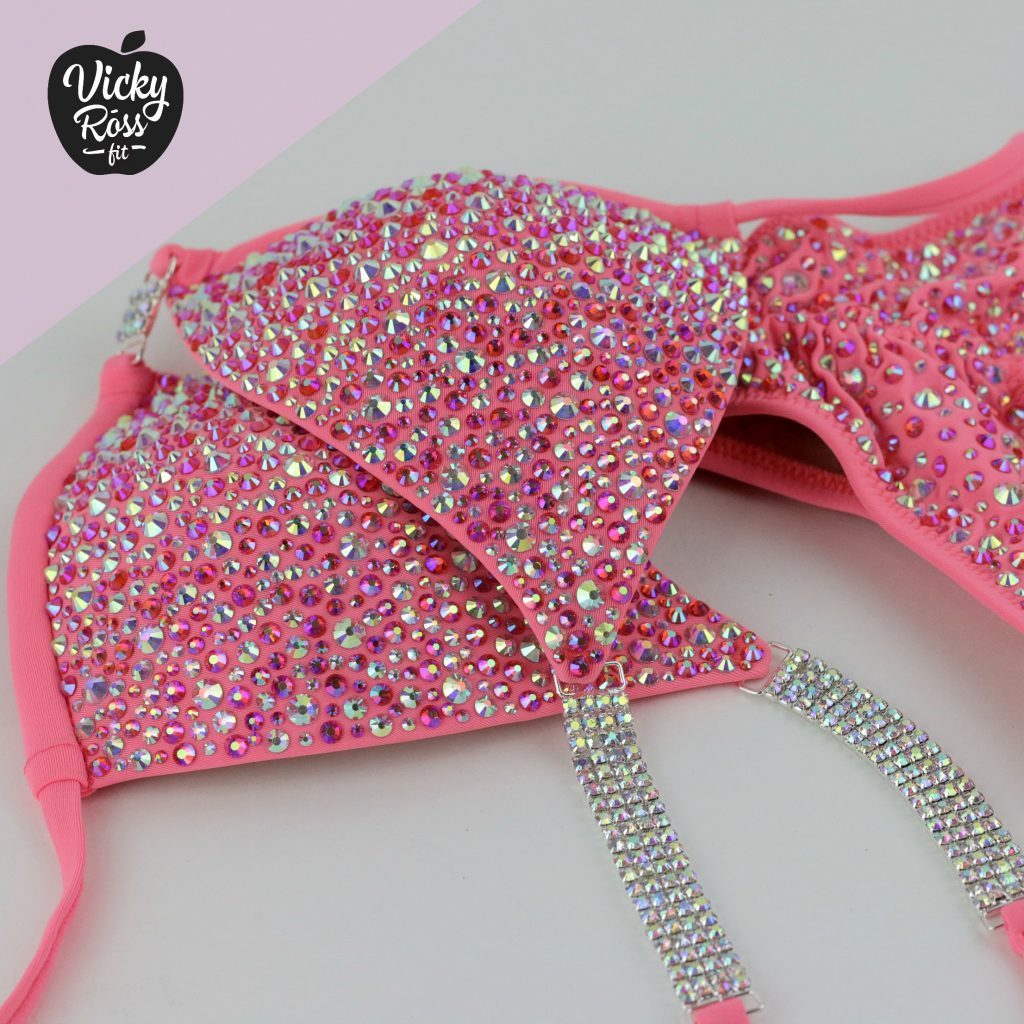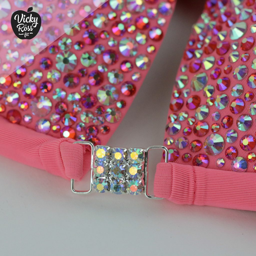 Neon Pink Crystal Competition Bikini Suit | Full Scatter Pro Multi Color