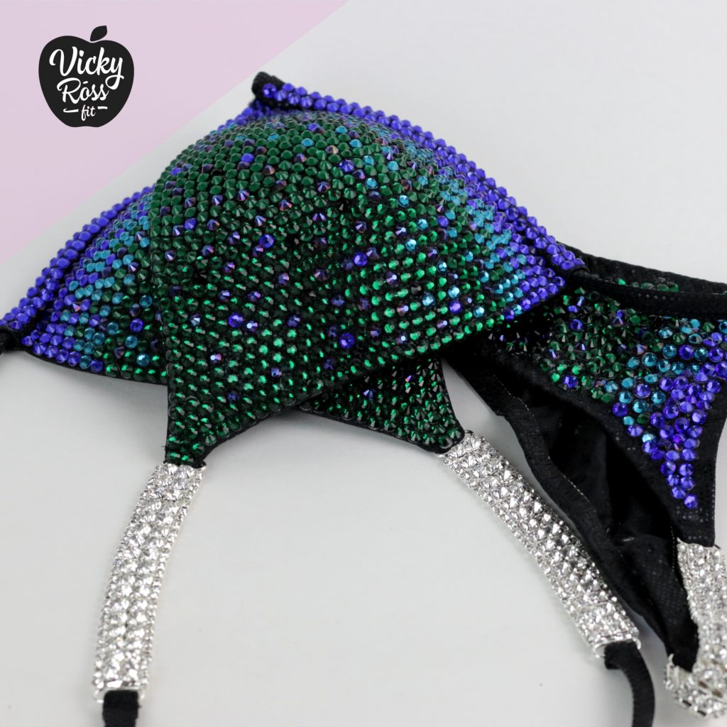 At Vicky Ross Fit we also accept Fully Custom Made Suit Orders! Use “Request Custom Order” button placed under the product image to process your order and we will get back with you within 24 hours by sending you an email asking to provide all needed measurements and directions on how to process your custom order. Custom made crystal bikini can be made in any desired fabric (nylon, velvet, holographic), color and size. At Vicky Ross Fit you have the opportunity to become a designer yourself and build a suit from your inspiration!
