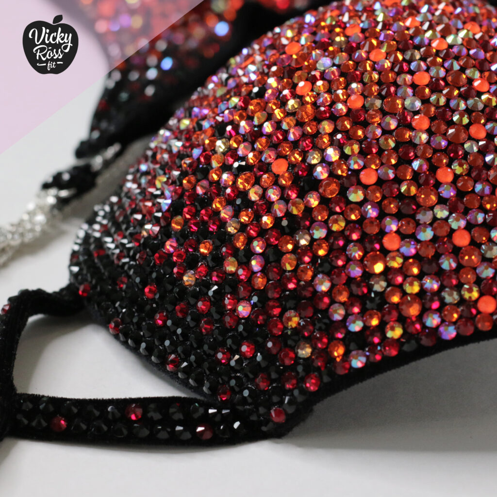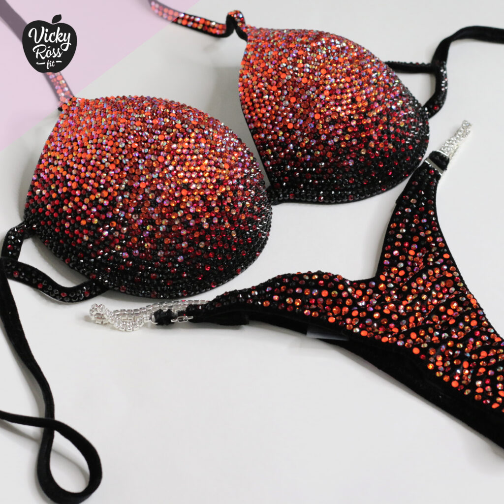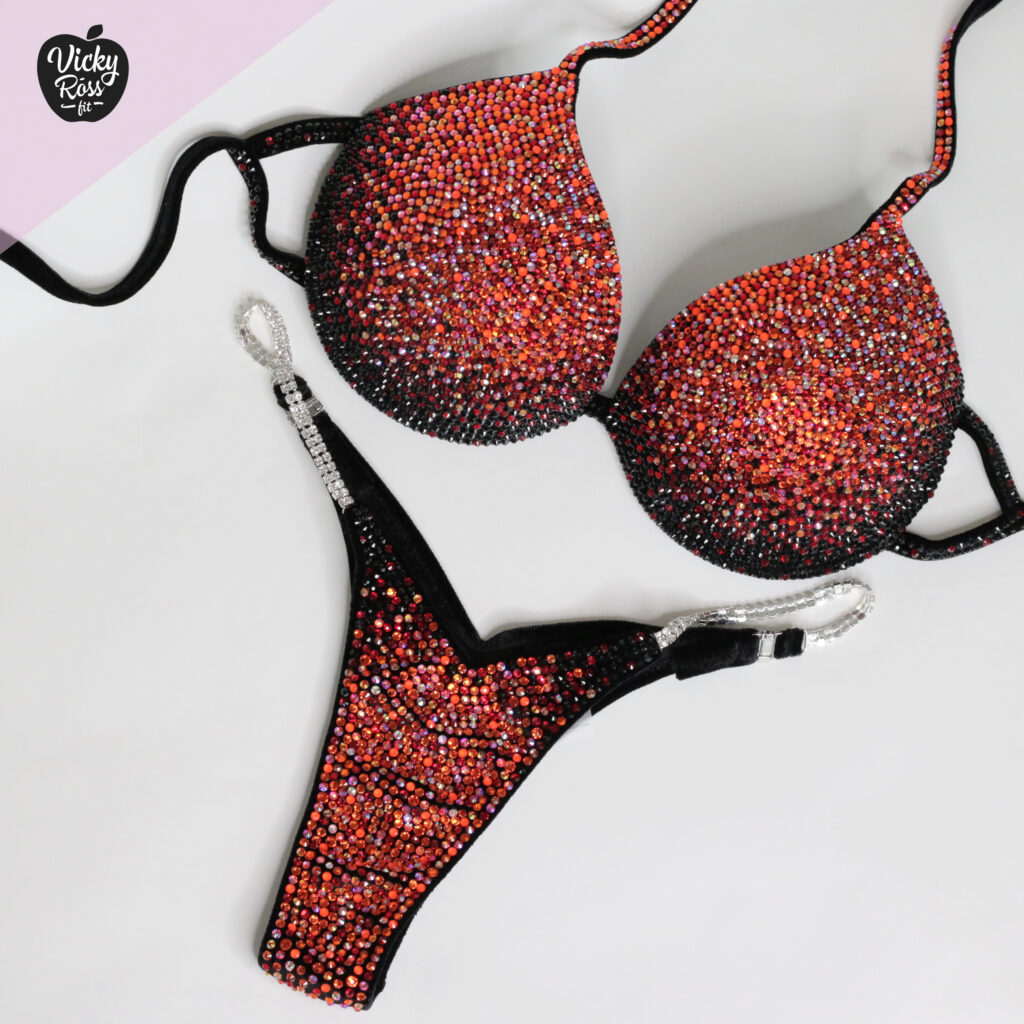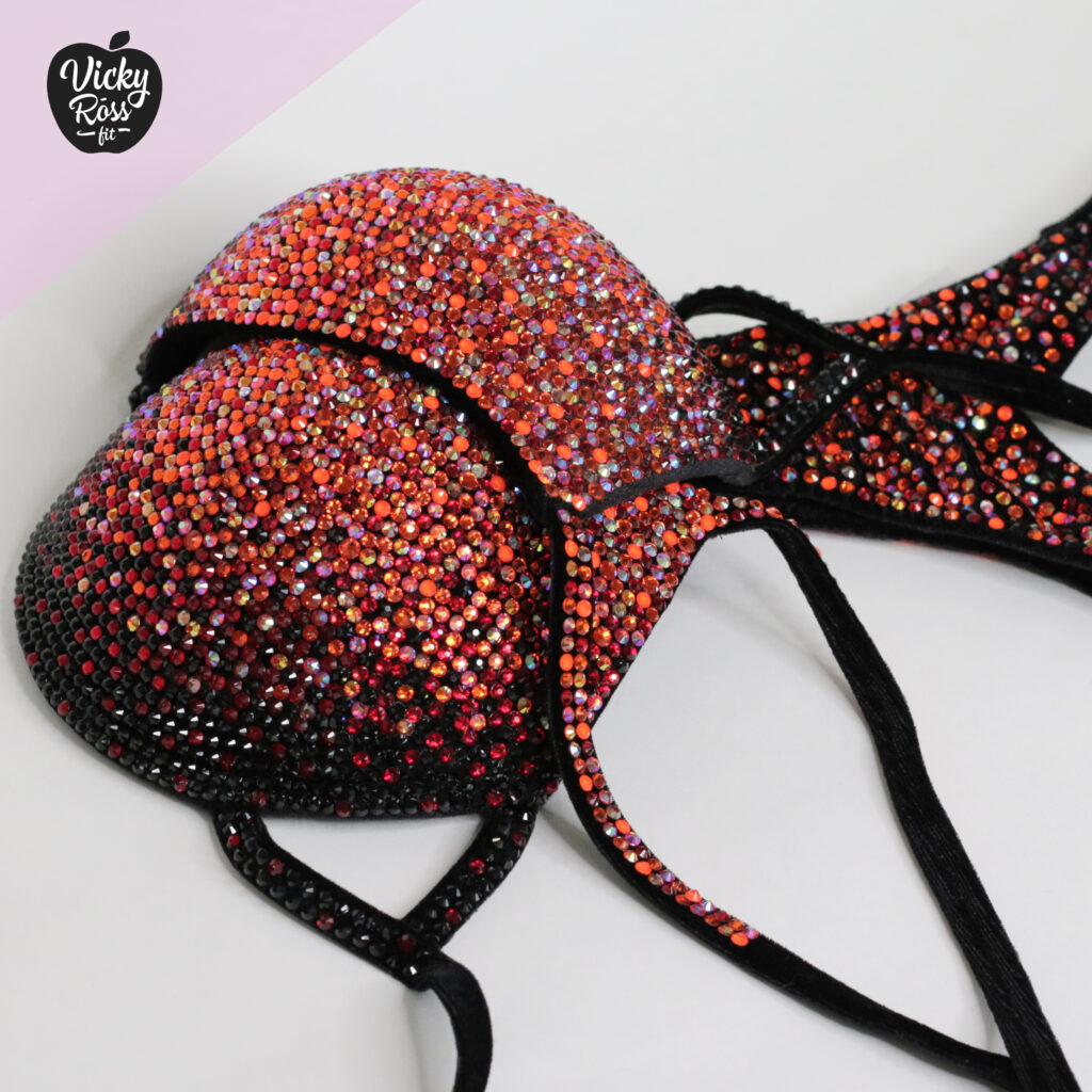 At Vicky Ross Fit we all things considered accept Fully Custom Made Suit Orders! Use “Request Custom Order” button placed under the product image to process your order and we will get back with you within 24 hours by sending you an email asking to provide all needed measurements and directions on how to process your custom order. Custom made crystal bikini can be made in any desired fabric (nylon, velvet, holographic), color and size. At Vicky Ross Fit you have the opportunity to become a designer yourself and build a suit from your inspiration!
