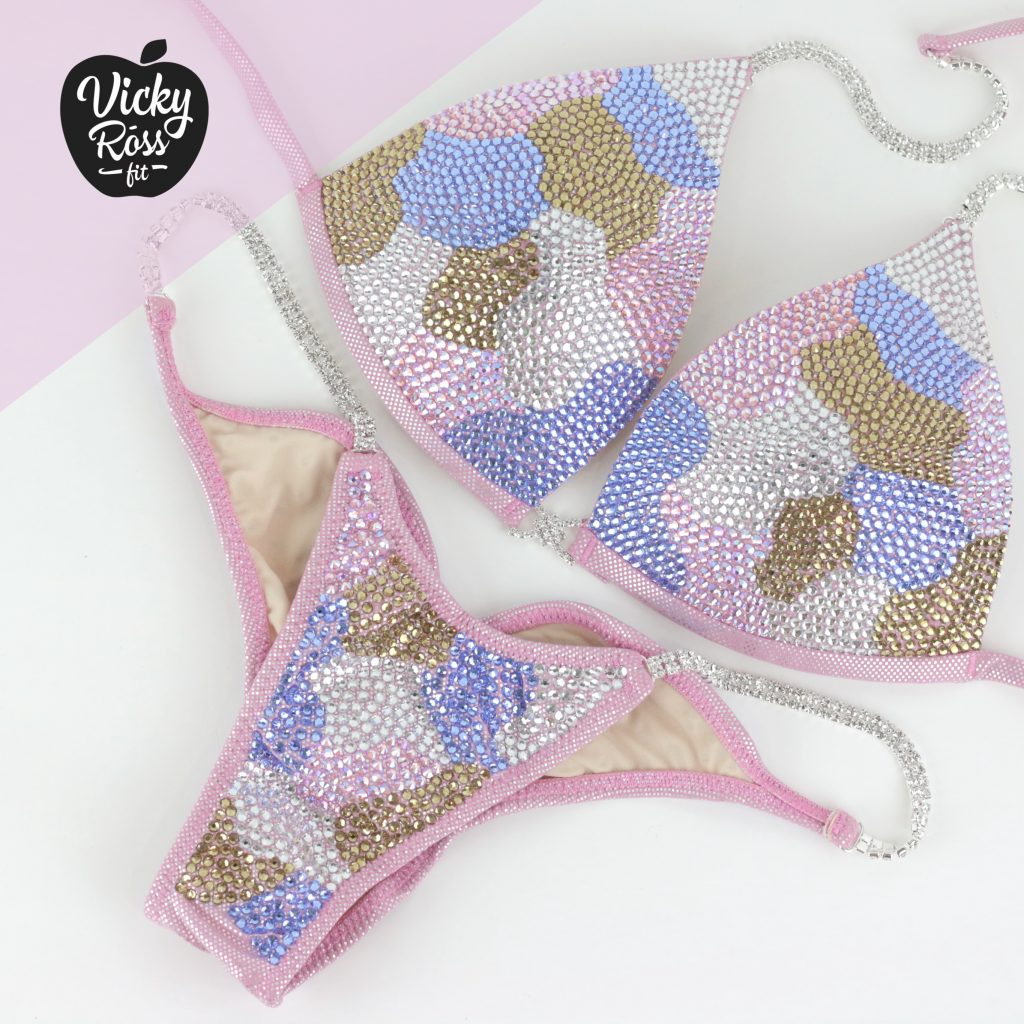 At Vicky Ross Fit we also accept Fully Custom Made Suit Orders! Use “Request Custom Order” button placed under the product image to process your order and we will get back with you within 24 hours by sending you an email asking to provide all needed measurements and directions on how to process your custom order. Custom made crystal bikini can be made in any desired fabric (nylon, velvet, holographic), color and size. At Vicky Ross Fit you have the opportunity to become a designer yourself and build a suit from your inspiration!
