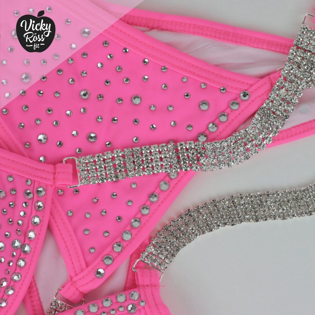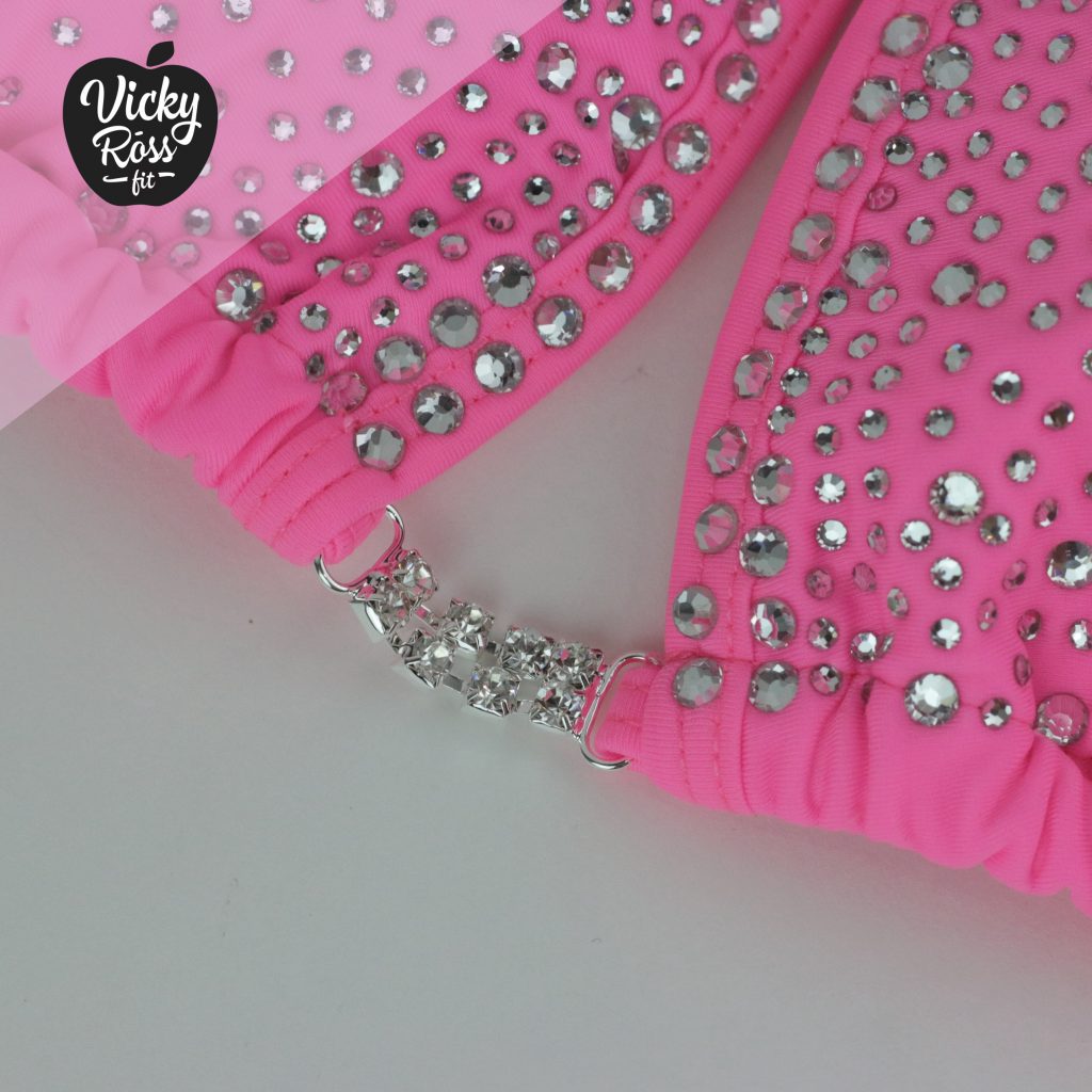 Provocative and exciting Pink Plain Competition Bikini will reveal many emotions in you! Pink Competition Bikini will help show your muscular body in the best light. Above all, this is a Stunning Hot pink bikini embellished with Swarovski rhinestones with a gorgeous rhinestone back connector to eliminate messy strings. Shiny high-quality crystals completely cover the entire bikini. In addition, they really shine and sparkle under stage lights. This Competition Bikini will give you 100% confidence in your beauty!