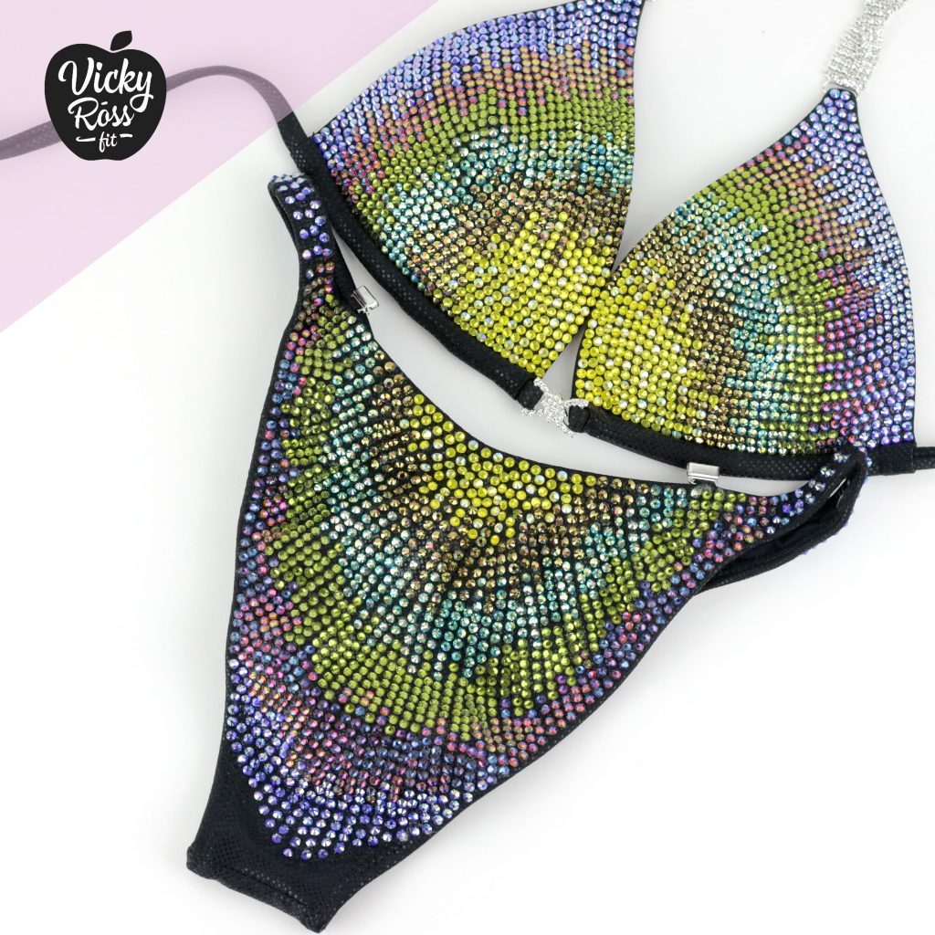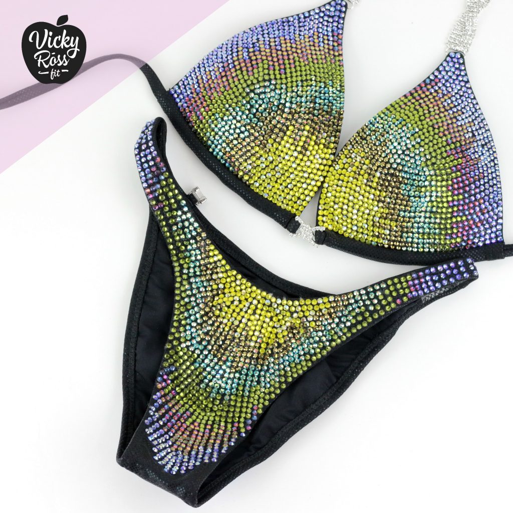 At Vicky Ross Fit we also accept Fully Custom Made Suit Orders! Use “Request Custom Order” button placed under the product image to process your order and we will get back with you within 24 hours by sending you an email asking to provide all needed measurements and directions on how to process your custom order. Custom made crystal bikini can be made in any desired fabric (nylon, velvet, holographic), color and size. At Vicky Ross Fit you have the opportunity to become a designer yourself and build a suit from your inspiration!