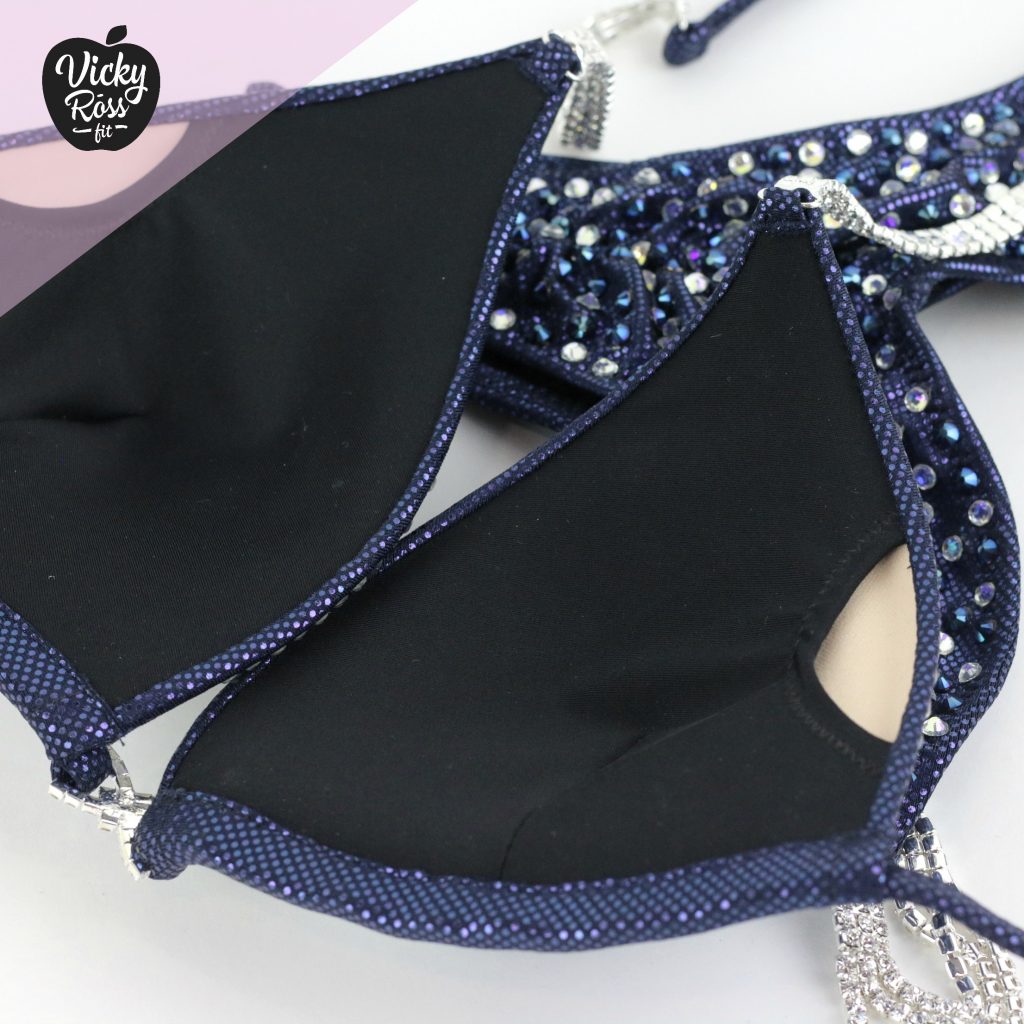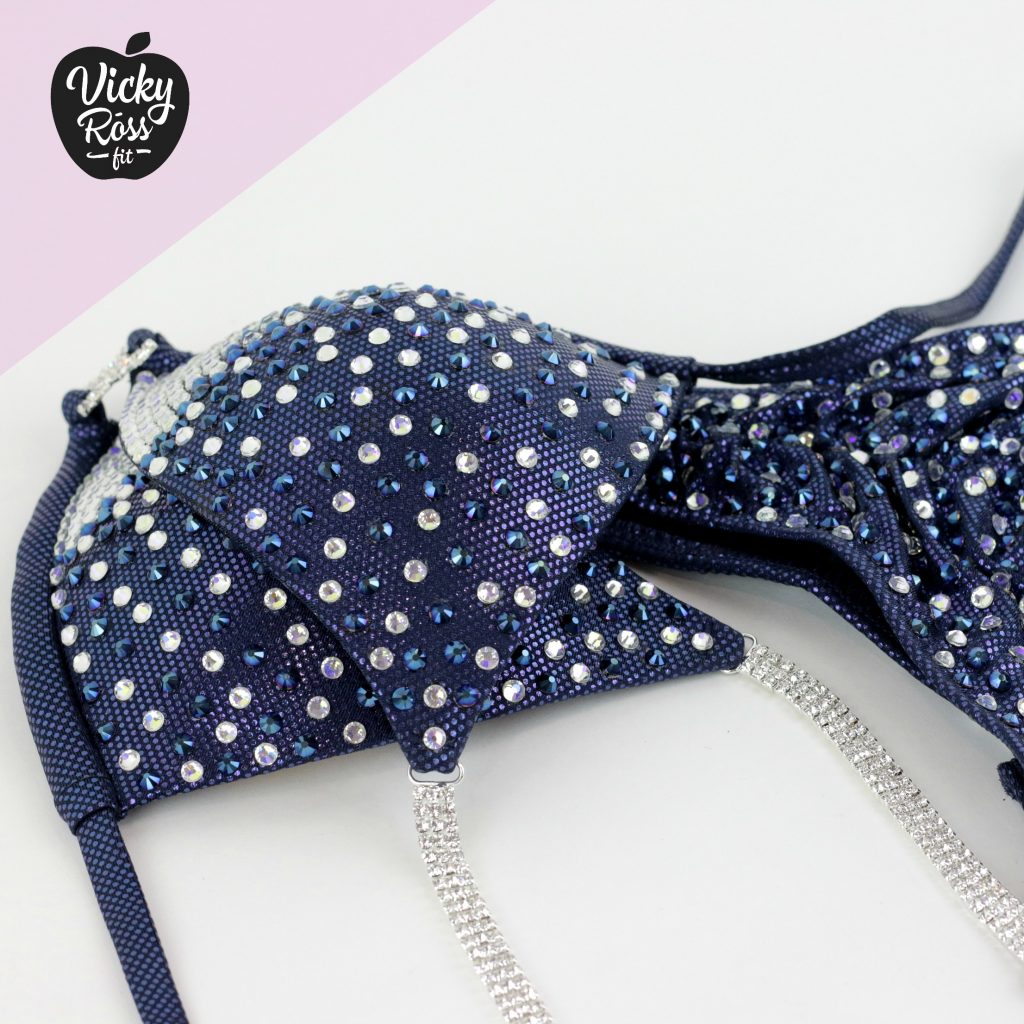 At Vicky Ross Fit we also accept Fully Custom Made Suit Orders! Use “Request Custom Order” button placed under the product image to process your order and we will get back with you within 24 hours by sending you an email asking to provide all needed measurements and directions on how to process your custom order. Custom made crystal bikini can be made in any desired fabric (nylon, velvet, holographic), color and size. At Vicky Ross Fit you have the opportunity to become a designer yourself and build a suit from your inspiration!