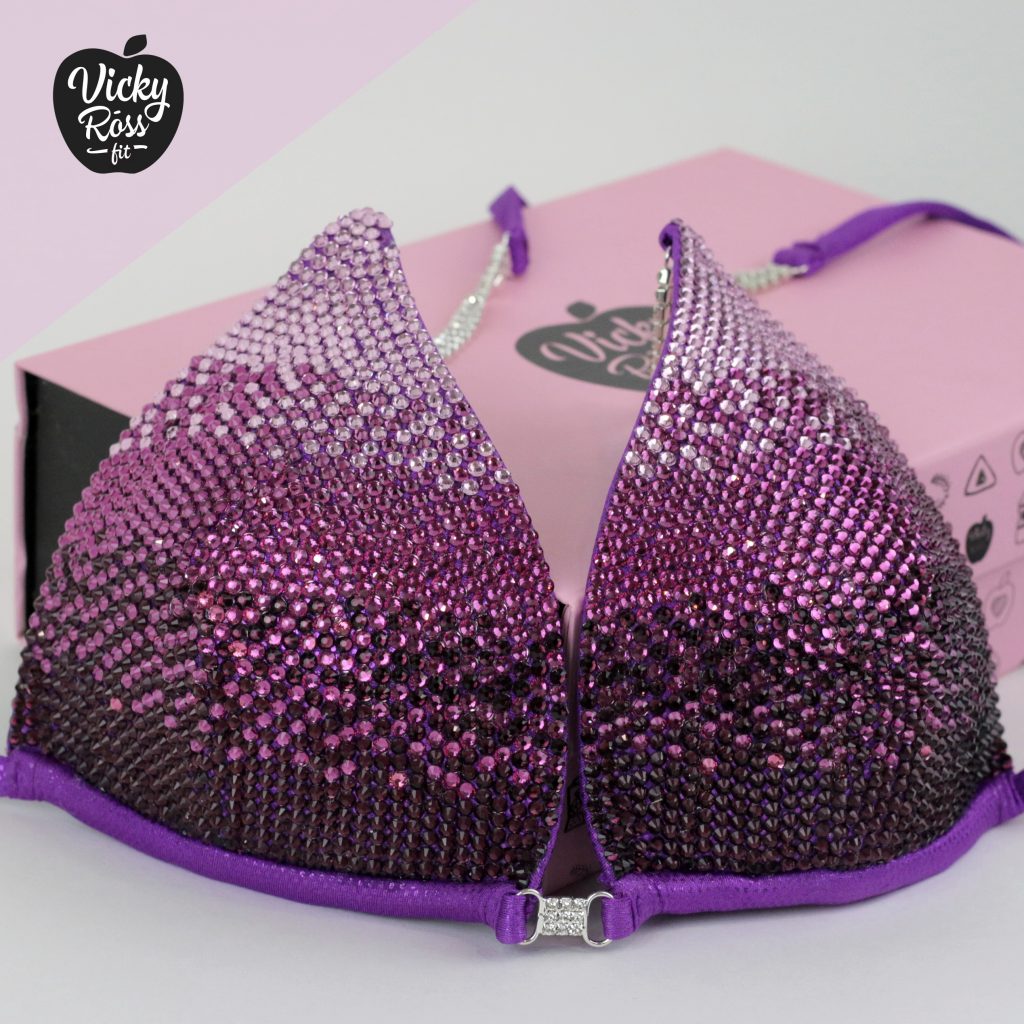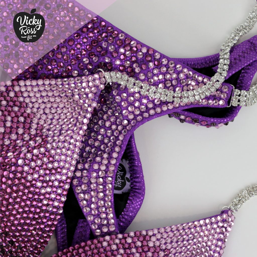 🖤 Fully lined Purple Ombre Competition Bikini Suit by Vicky Ross Fit