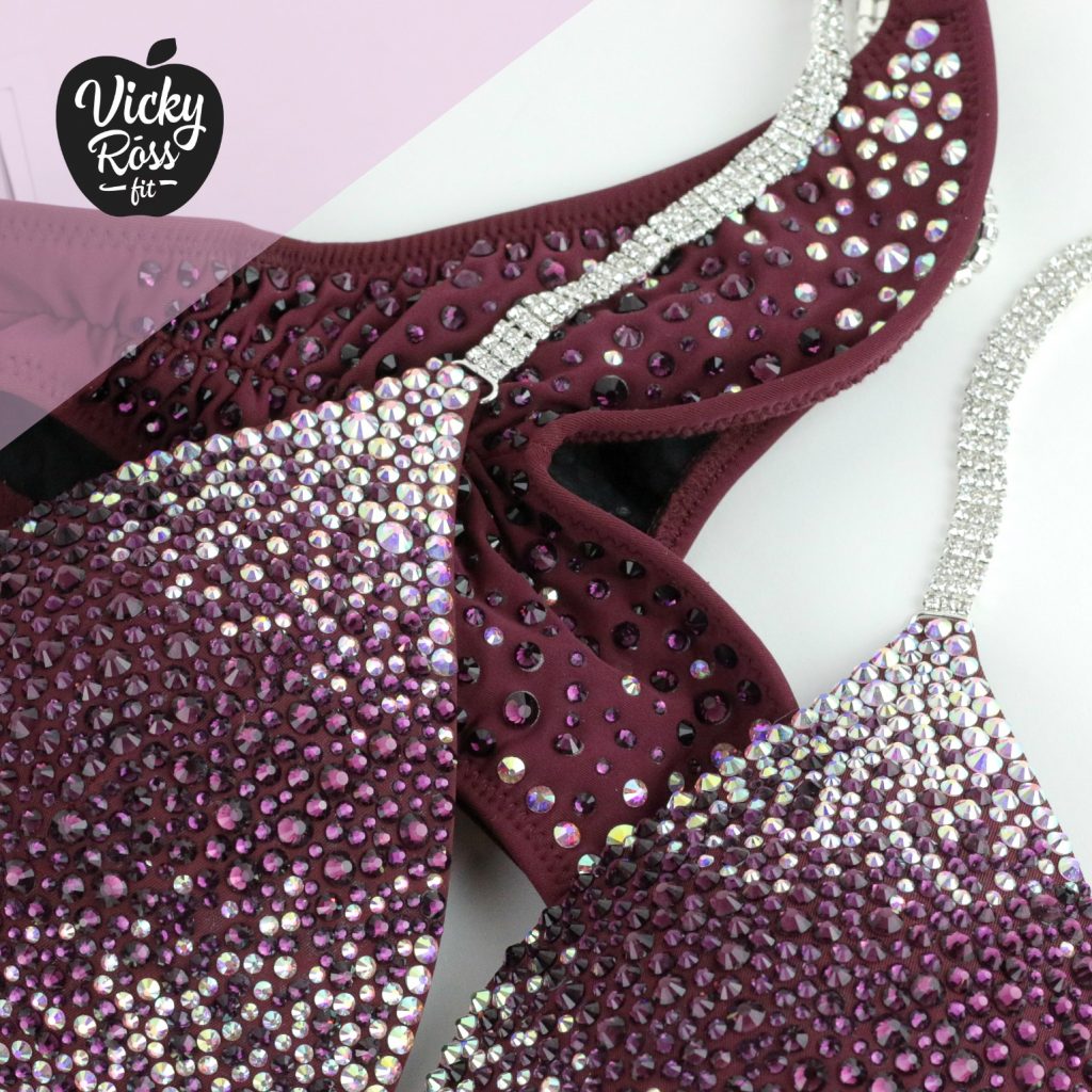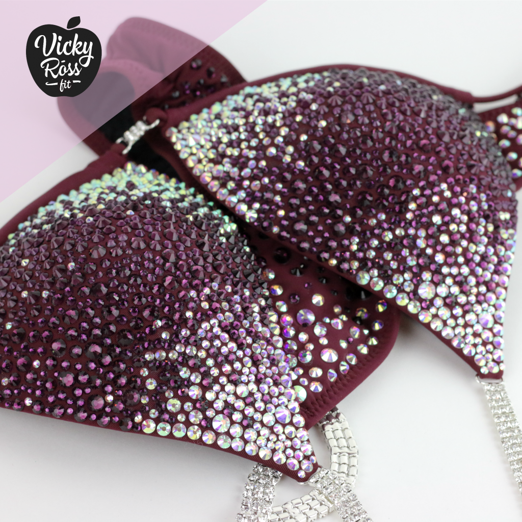 Incredibly beautiful Star Dust Fitness Competition Bikini for competitions. This bikini has a little more edge than the rest, perfect for the girl who’s in it to win it. Bright and Sparkling AB and Amethyst crystals will steal all the lights of the show. The crystals perfectly reflect the light of the spotlights. This bikini will decorate your ideal body and enchant of your beauty!