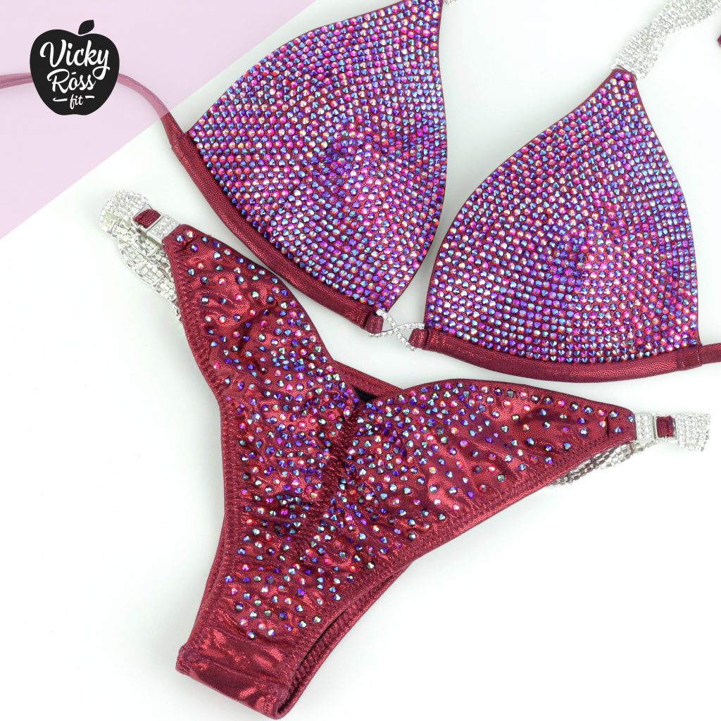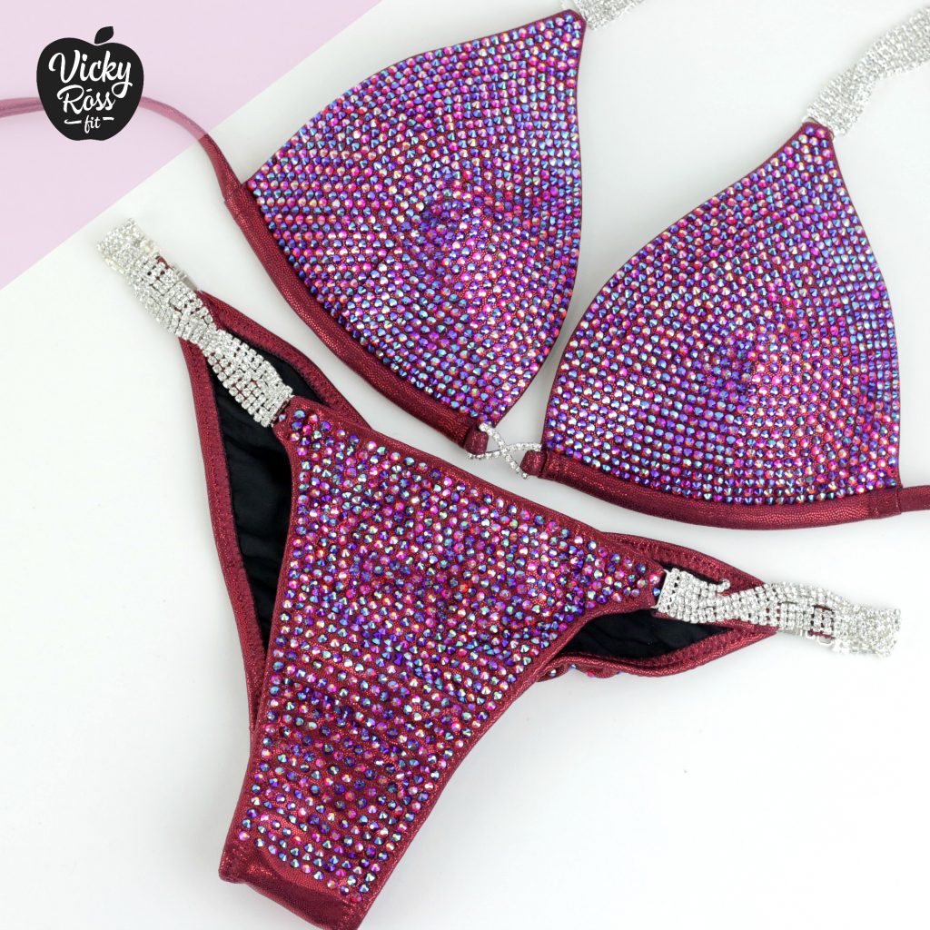 No other Wine Burgundy Crystal Competition Bikini Suit looks as good on stage!