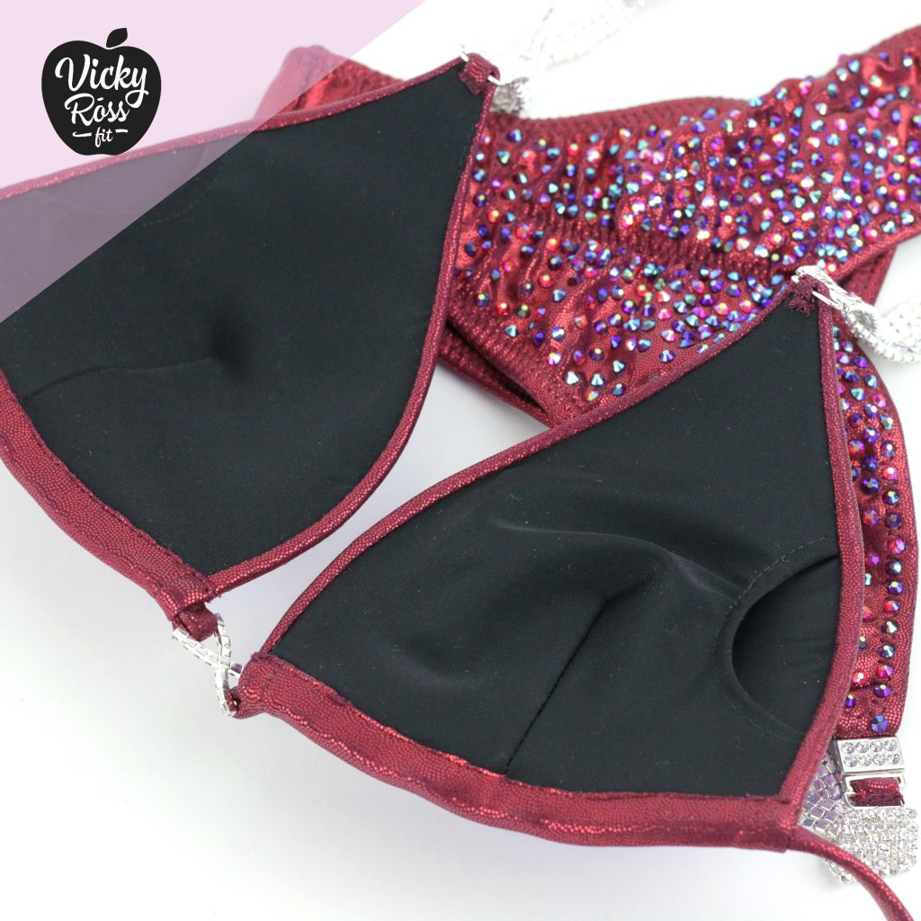 🖤 Fully lined Wine Burgundy Crystal Competition Bikini Suit